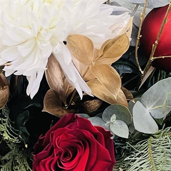 The Christmas Luxe Collection features premium roses with elegant seasonal blooms in your choice of classic reds, golds and greens, or soft whites, pale pinks and silver. Beautifully arranged and presented in a stylish gift bag, it’s a luxurious and effortless festive gift.